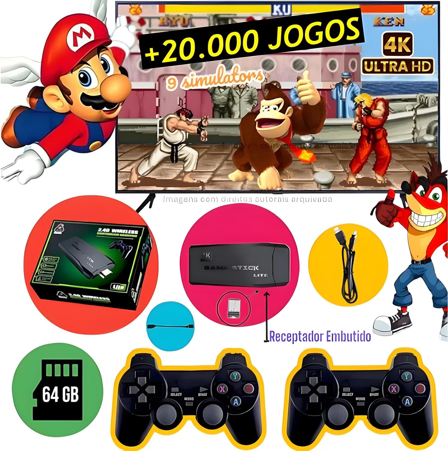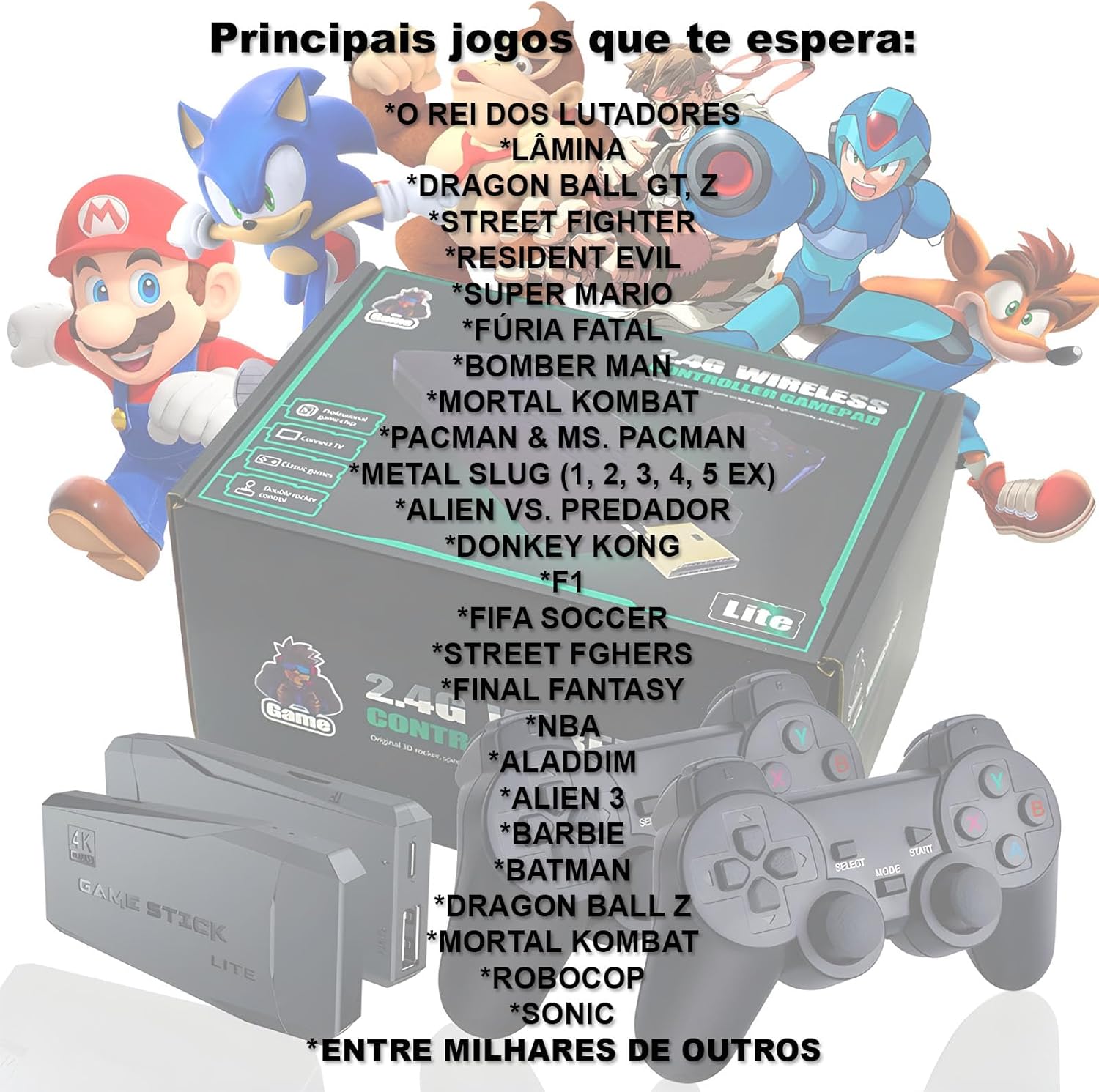 GAME STICK 4K ORIGINAL VERSÃO ATUALIZADA 11 MIL JOGOS com 2 controles
